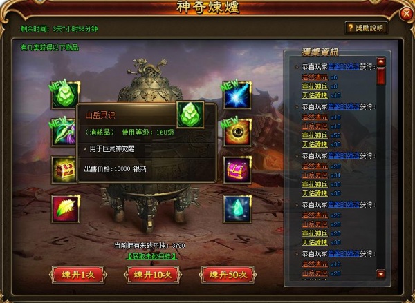 1、主角等级达到160级开启神奇炼炉活动;