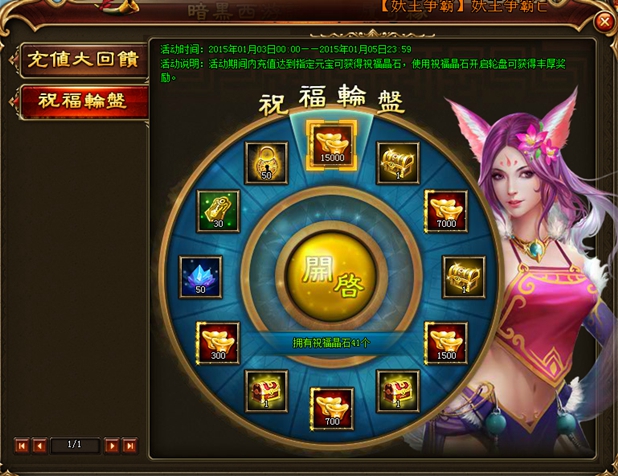 1. 活动期间玩家累计充值达到指定的元宝,可获得“幸运结晶”。