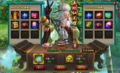 活动奖励:可在土地仙送礼中有几率获得至尊双属性宝物(至尊万毒鼎)、1~5级魂石礼盒、炼化石、5~6级符石礼盒、装备附魔石、七彩凤羽、洗练锁、猜拳令等。