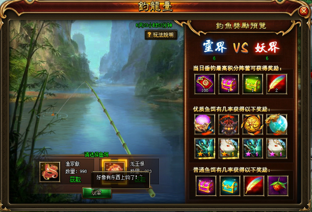 5. 使用“龙王恨”鱼饵,可100%钓到鱼,有几率获得最高奖励;