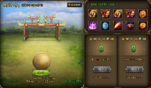 活动说明:活动期间内,每日累计充值元宝达到指定额度即可获得赠送的飞火流星,消耗指定数量的飞火流星可进球一次,每次进球都可获得进球宝箱,进球数量达到指定要求,玩家更可喝彩获得喝彩宝箱奖励。