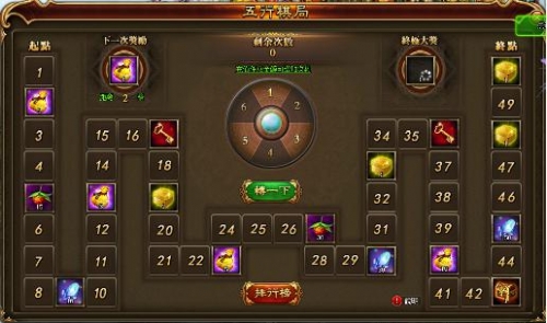 活动说明:活动期间,玩家每日充值小量额度即可获得转动棋局的行动力,当棋局中到达到一定格子即可获得当前格子的奖励,奖励内容:万能钥匙,紫色天赋卡宝箱,仙造石。