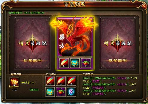 4、百鸟朝凤的奖励会产出大量的七彩凤羽,是培养幻翼的好时机,千万不要错过了!