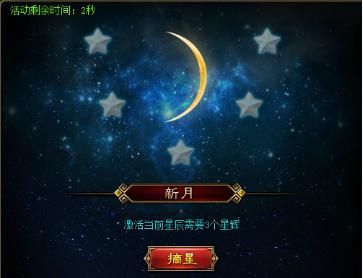 活动说明:活动开启时间内,玩家可通过副本和降妖除魔掉落或者商城购买星辉道具,使用星辉点亮星辰,每点亮5个星辰可激活一个月相,激活月相即可获得玄兵神造的BUFF,可提高高星属性在洗练时出现的概率。
