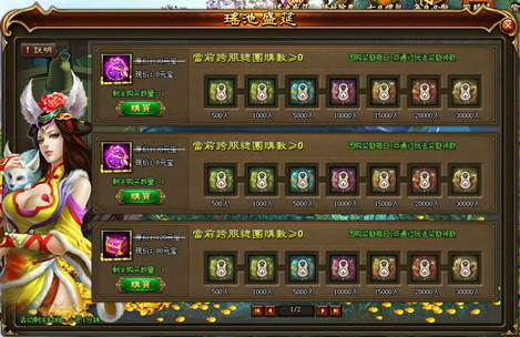 活动说明:玩家每日可购买瑶池盛筵中开放的礼包道具各1个,购买后将累计计入该道具的跨服团购人数,单个礼包购买的人数越多且达到指定的数量,所有在今日购买过的该礼包的玩家,都可以在0点结算后获得相应的团购奖励!温馨提示:活动开启时间内,每日可购买的礼包道具不变,每日可购买的数量各1个。