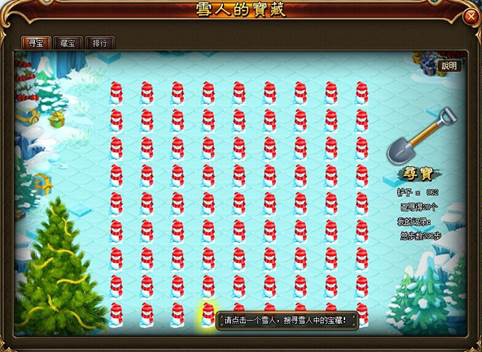 活动说明:每逢年末时,人们都将礼物藏在雪人中,让朋友们去寻找,并将这种游戏视为相互祝福、祈祷和平的重要传统,你也一起加入这个有趣的游戏吧!