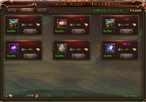 2.购买时间内累计充值达到指定的元宝,可购买对应的宝匣。