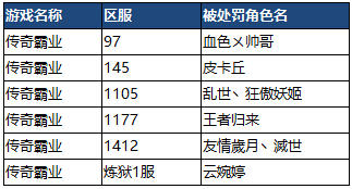 猎豹传奇霸业12月7日近期外挂使用者处罚名单