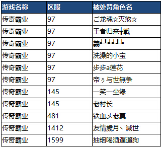猎豹传奇霸业12月8日近期外挂使用者处罚名单