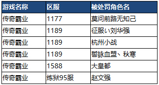 本次因为非法使用外挂的玩家被封禁的玩家名单如下: