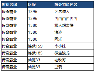 本次因为非法使用外挂的玩家被封禁的玩家名单如下: