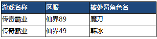 传奇霸业6月9日近期非法使用外挂处罚名单