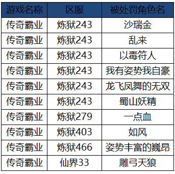 本次因为非法使用外挂的玩家被封禁的玩家名单如下:
