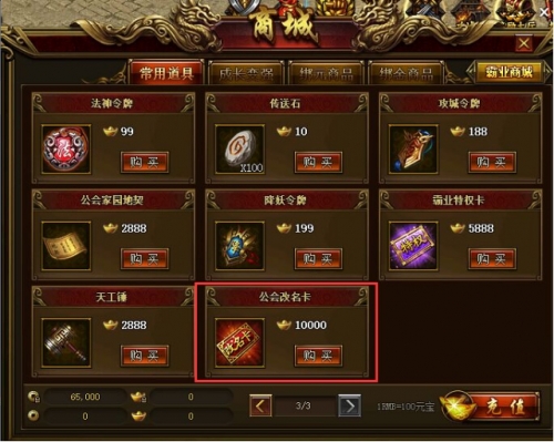 3.1会长使用公会改名卡即可对当前公会进行改名,改名CD为7天;公会改名卡可从商城购买;