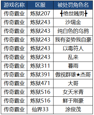 本次因为非法使用外挂的玩家被封禁的玩家名单如下: