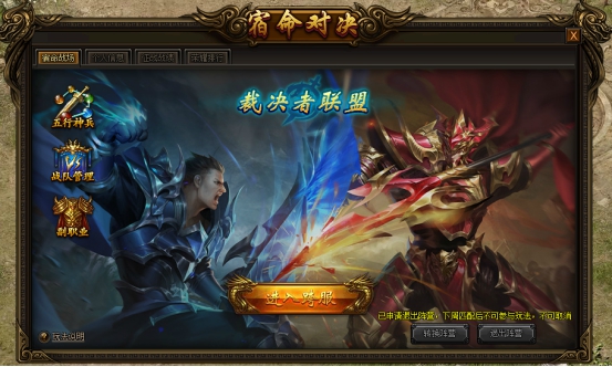 a. 玩法限制:开服天数达到90天,且角色等级达到100级,可从宿命对决图标处,由公会会长选择阵营后进入;