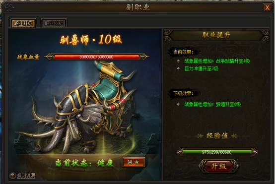 c) 副职业技能:随着职业等级提升,驯兽师可以获得多个技能,这些技能直接生效;驯兽师部分技能有最大等级上限,提升职业等级可提升该技能等级上限;