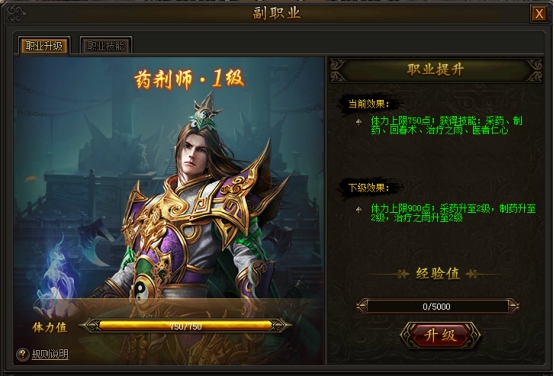 d) 副职业技能:随着职业等级提升,药剂师可以获得多个技能,这些技能直接生效;药剂师部分技能有最大等级上限,提升职业等级可提升该技能等级上限;