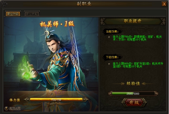 e) 副职业技能:随着职业等级提升,机关师可以获得多个技能,这些技能直接生效;机关师部分技能有最大等级上限,提升职业等级可提升该技能等级上限;