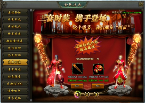 活动说明:活动期间,绝版时装限时出售,炫酷拉风外型、超高属性都在这里!