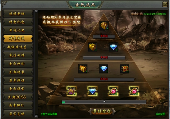 活动说明:活动期间,参与龙之宝藏将有几率获得神龙密藏奖励
