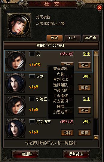 玩家通过点击好友图标(快捷键F)打开好友界面,左键点击人物头像显示私聊功能。