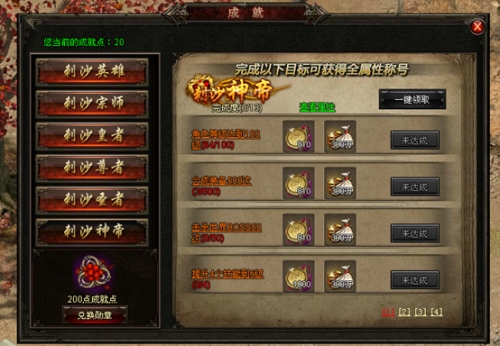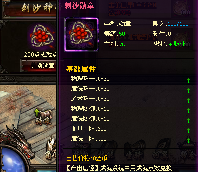 完成成就所获得的成就点可以用来兑换勋章,这也是刺沙游戏里勋章的唯一获得方式,只有不断的刷新成就获得成就点才能获得更高等级的勋章。