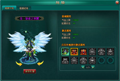 开启条件:拥有1个翅膀,即可开启翅膀修炼