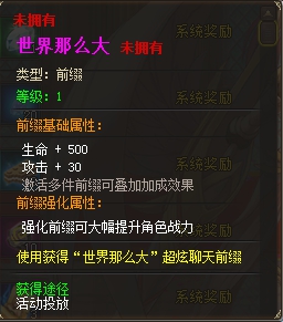 世界那么大前缀卡(7天)*1、坐骑进阶石*10 |