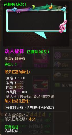 动人旋律聊天框(7天)*1、寻宝券*15、刮刮卡*5、五级宝石之魂*1、攻速能量*50、神器精炼石*1、万能聊天框碎片*9、至尊+9强化保护符*1、优秀幸运石*2 |