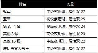 ● 观战助威:70级以上当前未参赛玩家,从16强开始,可以观战和击鼓助威,享获“请柬”(赛后参加庆功宴的道具)奖励!