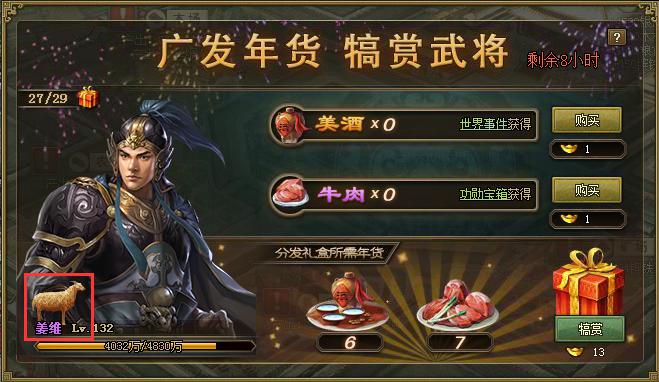 活动二、广发年货,犒赏武将(可获得吉羊)