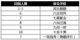 e)参宴的10人中,同一国家的人数越多,该国玩家获得的宴会评价越好,点券数量越多。