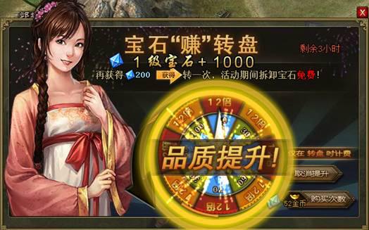 宝石转盘活动期间,兵器拆卸宝石免费;