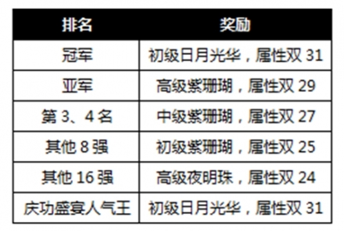 ● 观战助威:70级以上当前未参赛玩家,从16强开始,可以观战和击鼓助威,享获“请柬”(赛后参加庆功宴的道具)奖励!