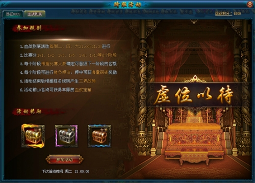 3、活动结束后,根据本次活动排名获得丰厚的血战宝箱。