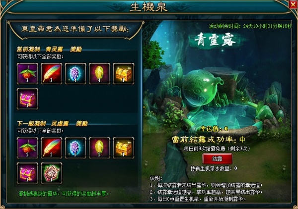 3、 每次结露若未结出露华,则会增加下次结露的幸运值;