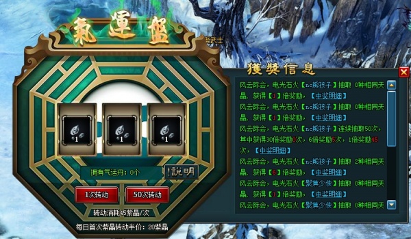 2、 50次转动需要VIP4以上玩家才可以使用;