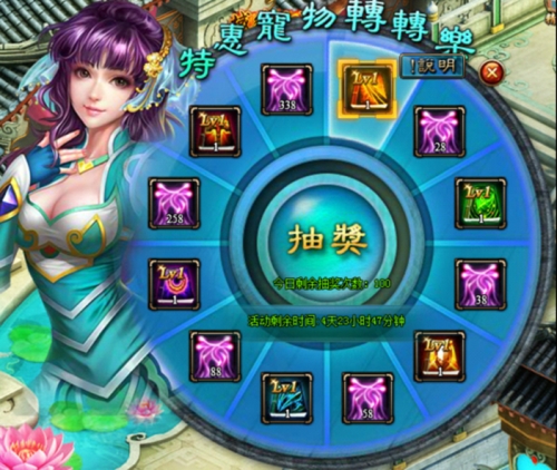 每次启动转转乐要消耗48紫晶,可以随机获得转盘中的奖励一份,这些奖励随便一个都是有大用处的哦;