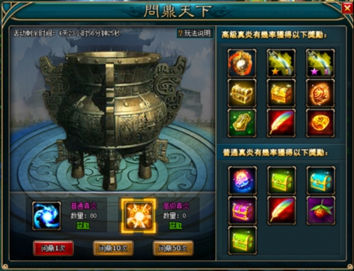 使用高级真炎问鼎,可100%获得奖励,有几率获得最高奖励。