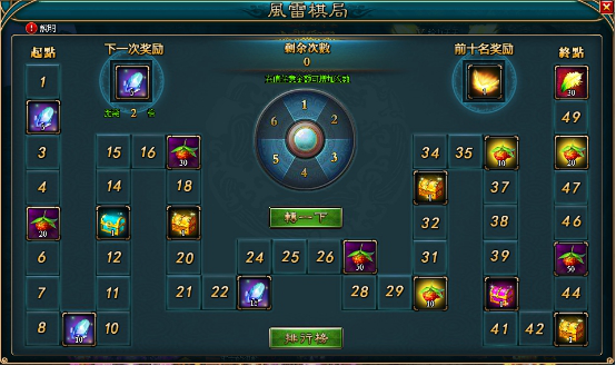 风雷棋局又来了,玩家每日充值小量额度即可获得转动棋局的行动力,当棋局中到达到一定格子即可获得当前格子的奖励,奖励内容包含:飞翼礼盒(内含游戏内十六款飞翼),仙造石,还有特殊制作的三款特殊形象幻翼。情殇,破神,汇虚