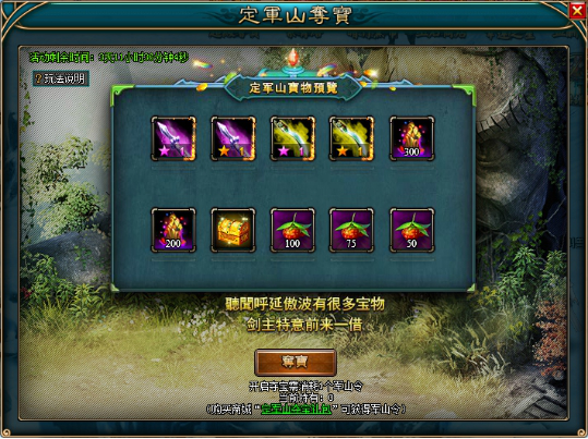 10) 活动结束后,玩家不能打开定军山夺宝主界面,也不能进行夺宝操作。