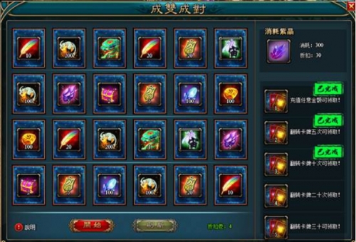 4.玩家每次翻牌消耗紫晶,翻到指定次数后可领取折扣券;