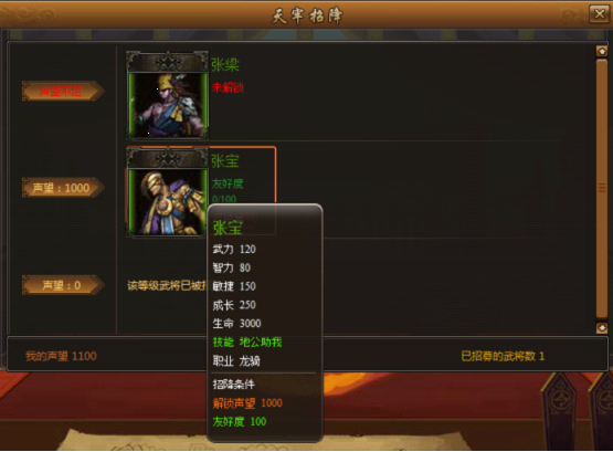 当武将的友好度满足招降条件时,武将即可被招降到帐下。