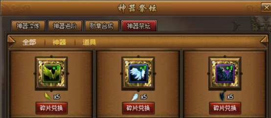 通过【神器祭坛】----神殿祭坛界面兑换: