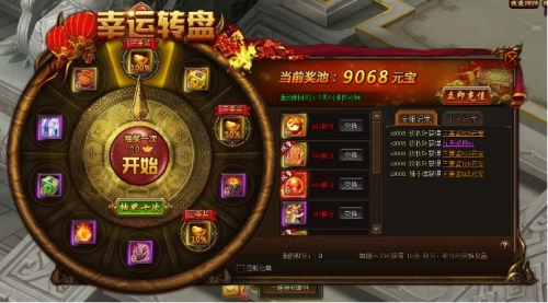 【活动时间】2016年11月10日更新后至2016年11月16日23点59分 【活动内容】 活动期间,玩家可以花费20元宝在幸运大转盘碰一碰运气 玩家每次转动转盘,都会有5元宝累计作为奖池奖金,每次转盘均有机会获得奖池百分比的奖金及珍贵道具 玩家每次转动转盘,还能获得10点积分,积分可以用于兑换各种道具礼包 奖池的起始奖金为5000元宝