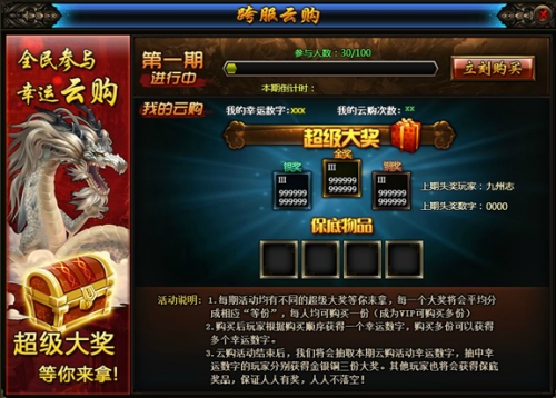 1、 可花费元宝根据购买顺序获得一个幸运数字,每人均可购买一份(成为VIP可购买多份,购买多份可获得多个幸运数字)