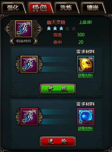 每件紫色装备可以通过装备升级和升阶来提升自身属性,装备每10级为一档,装备的品质从低到高依次是紫装》顶级紫装》橙装》金装》红装。升级/升阶所需的道具可在镇妖塔、世界BOSS、八方玄妖中产出。