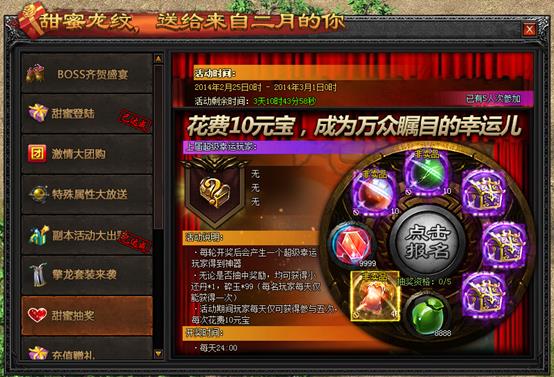 二、甜蜜抽奖,仅需10元宝,每天乐翻天!