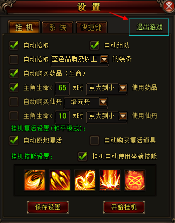 2、若出现登陆区服与对应角色不符的异常情况,则可通过游戏界面右上角“系统设置-退出游戏”,再重新登陆即可。